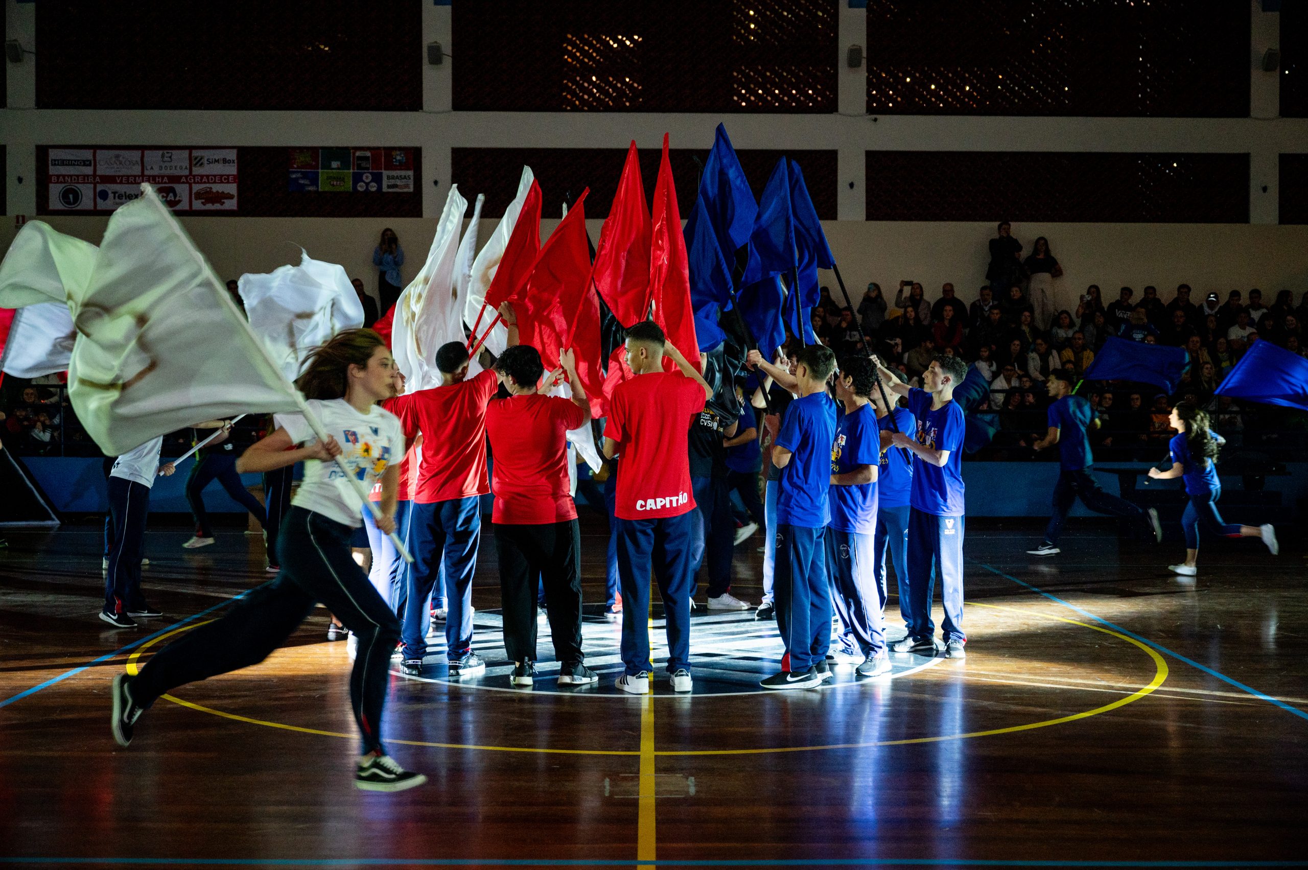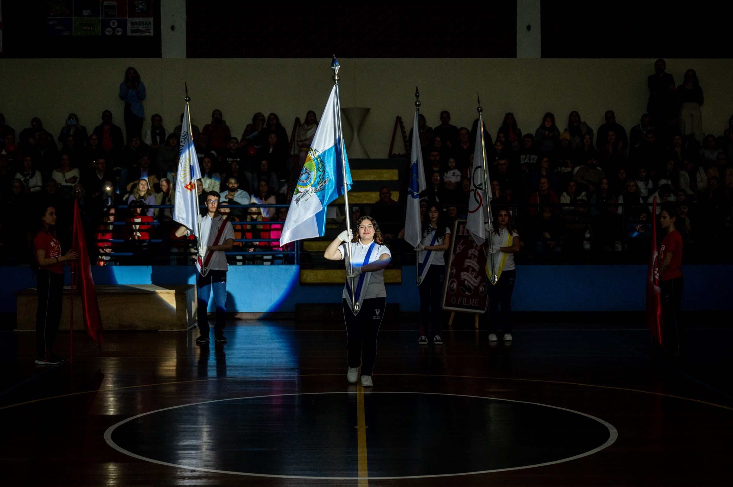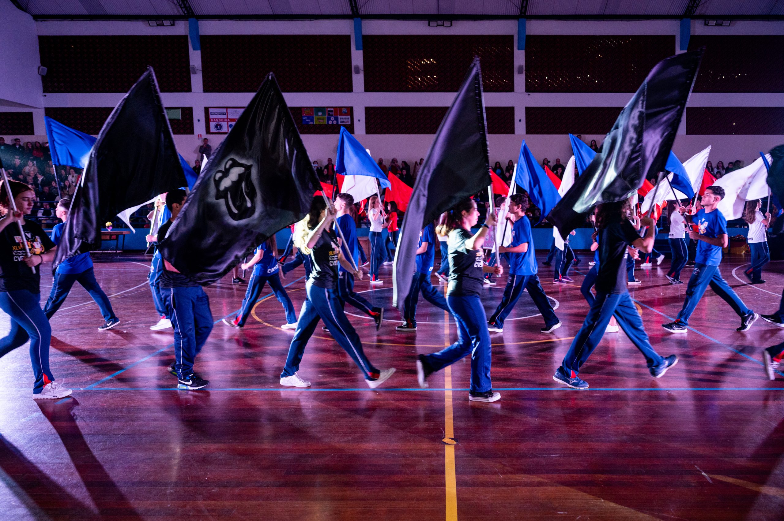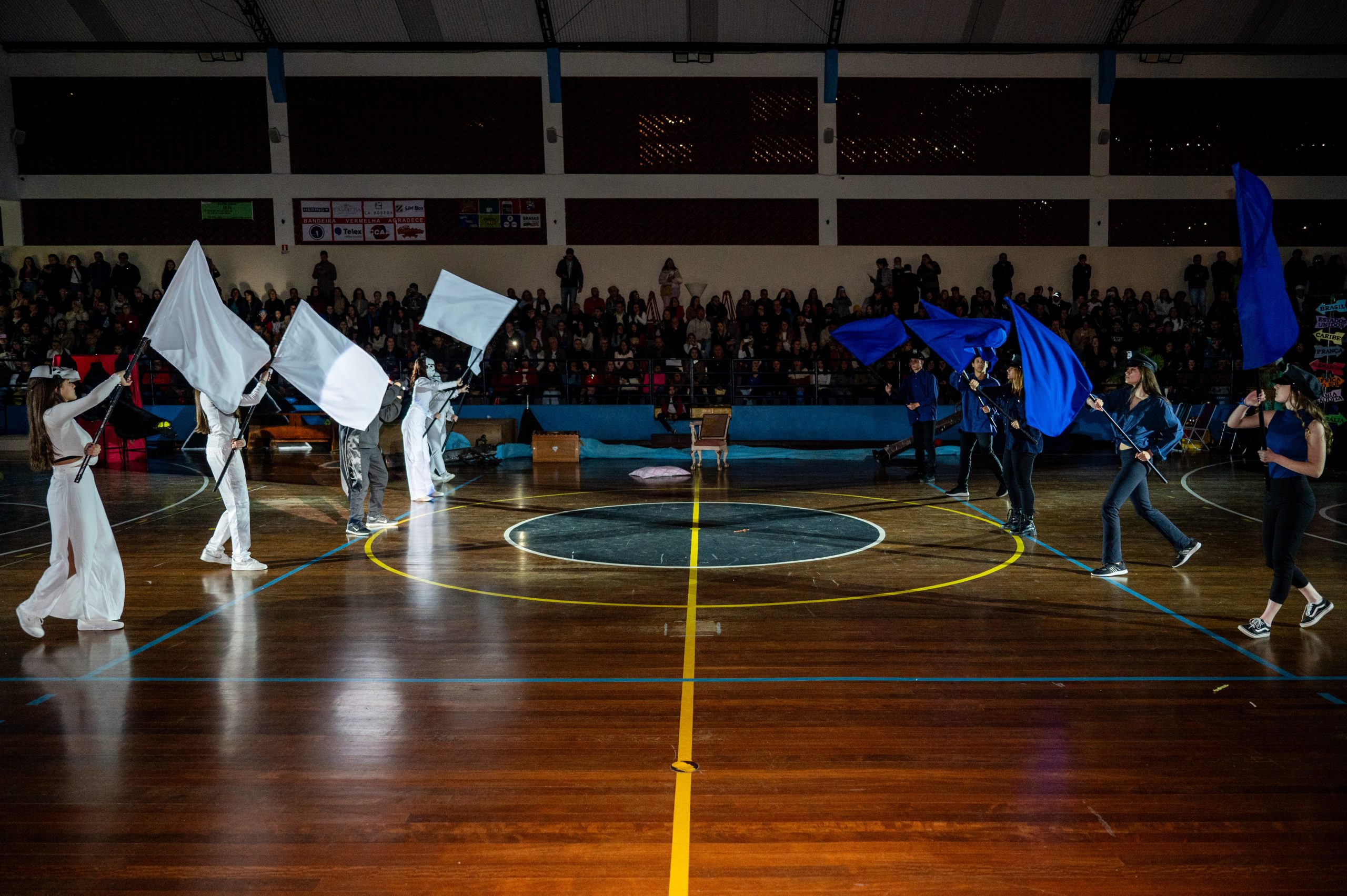 A Bandeira Azul, com os capitães Ana Luiza de Mello Morais, Júlia Macedo Meira, Rafany da Silva Gehren, Thais Carvalho Tuler, apresentou o tema “Toda história tem dois lados”.