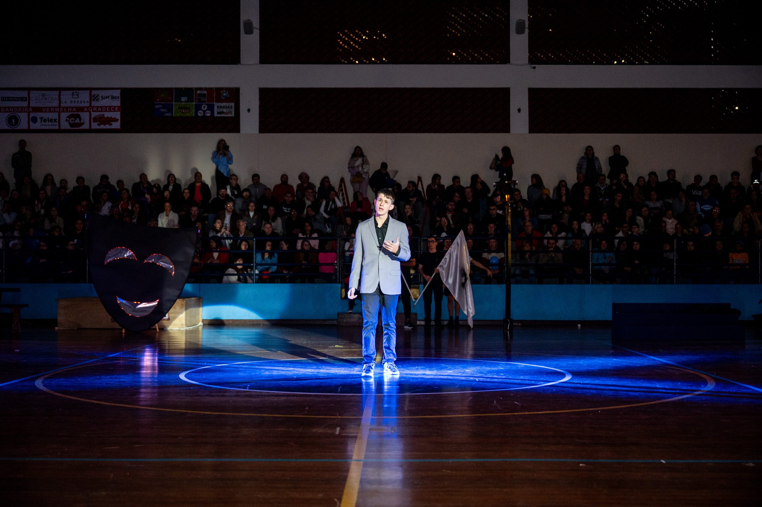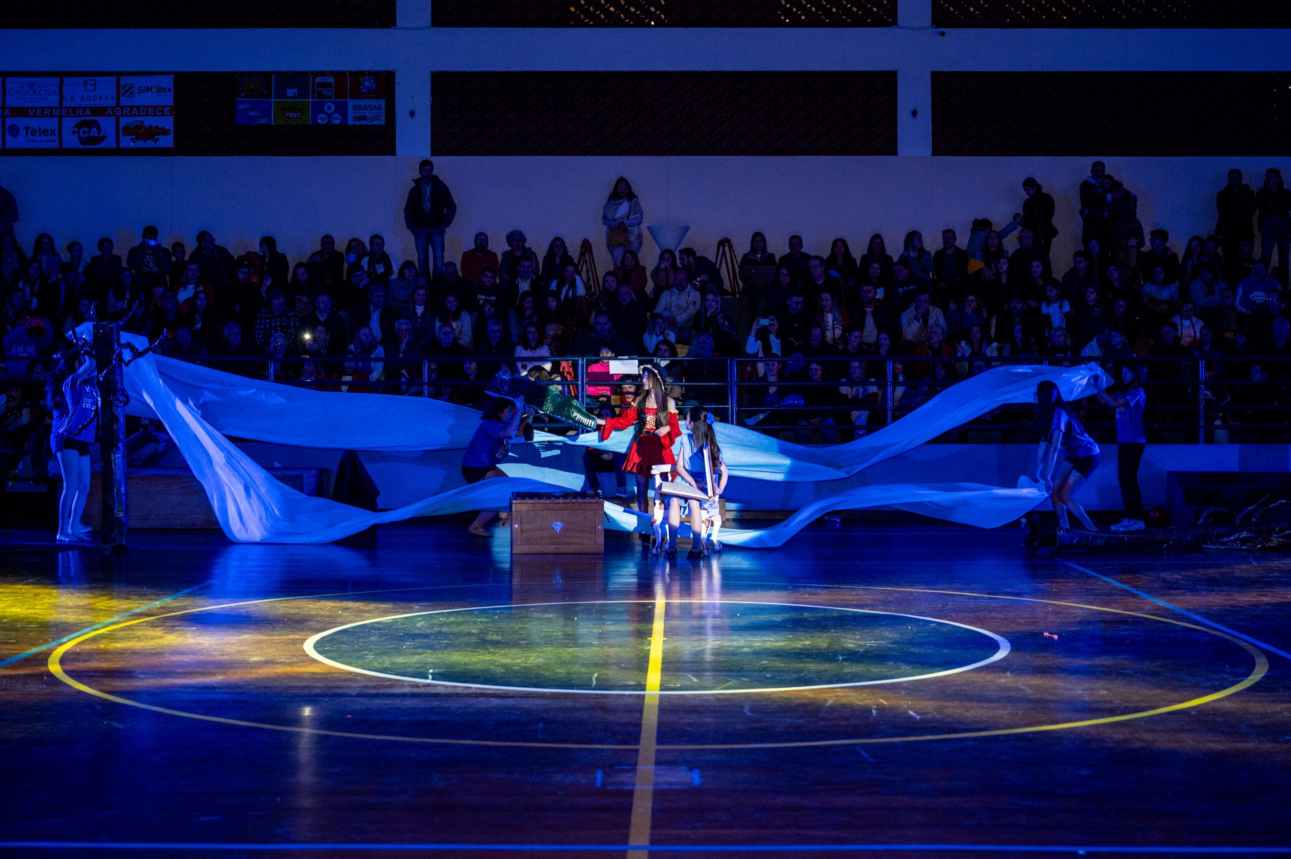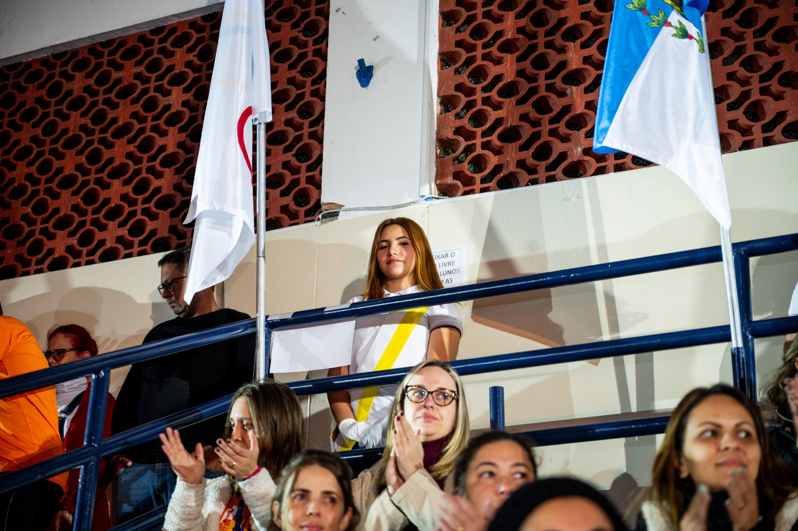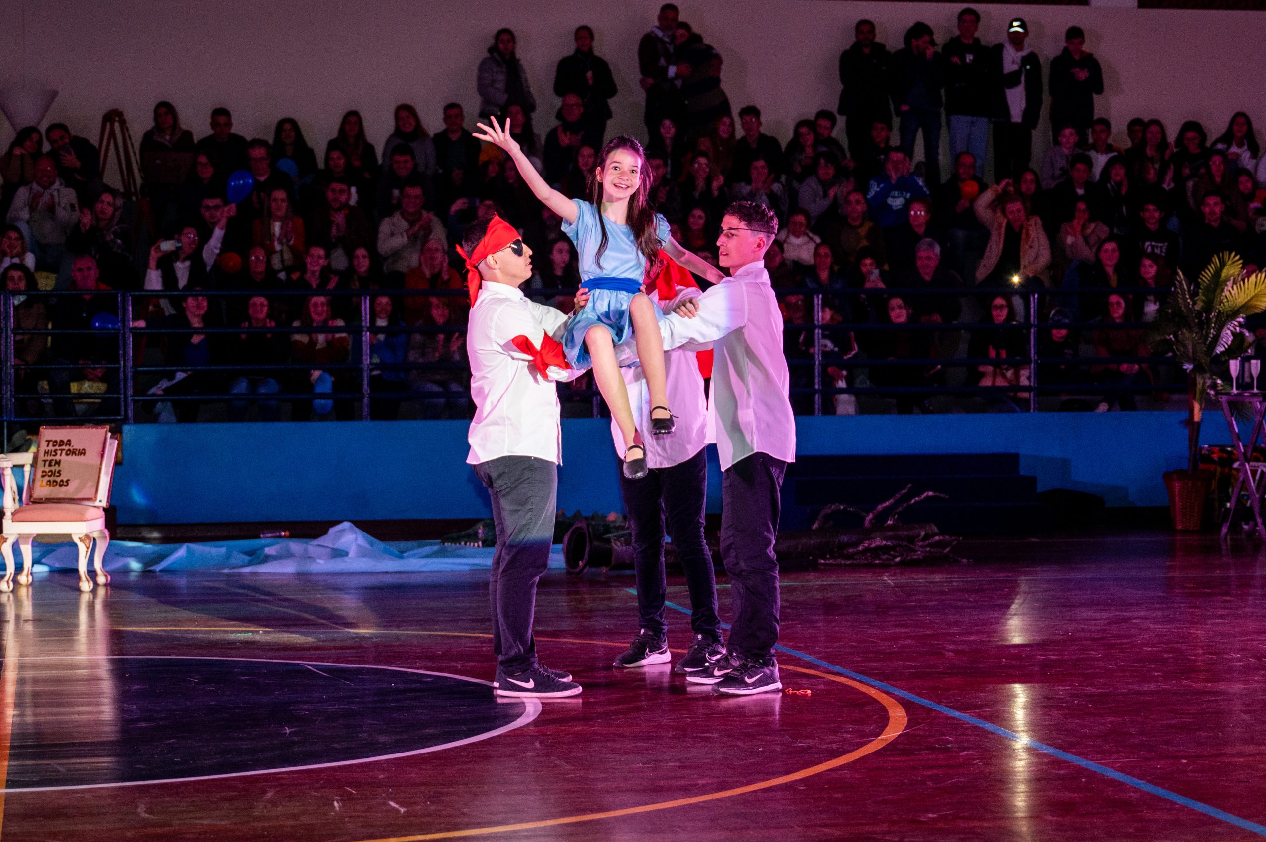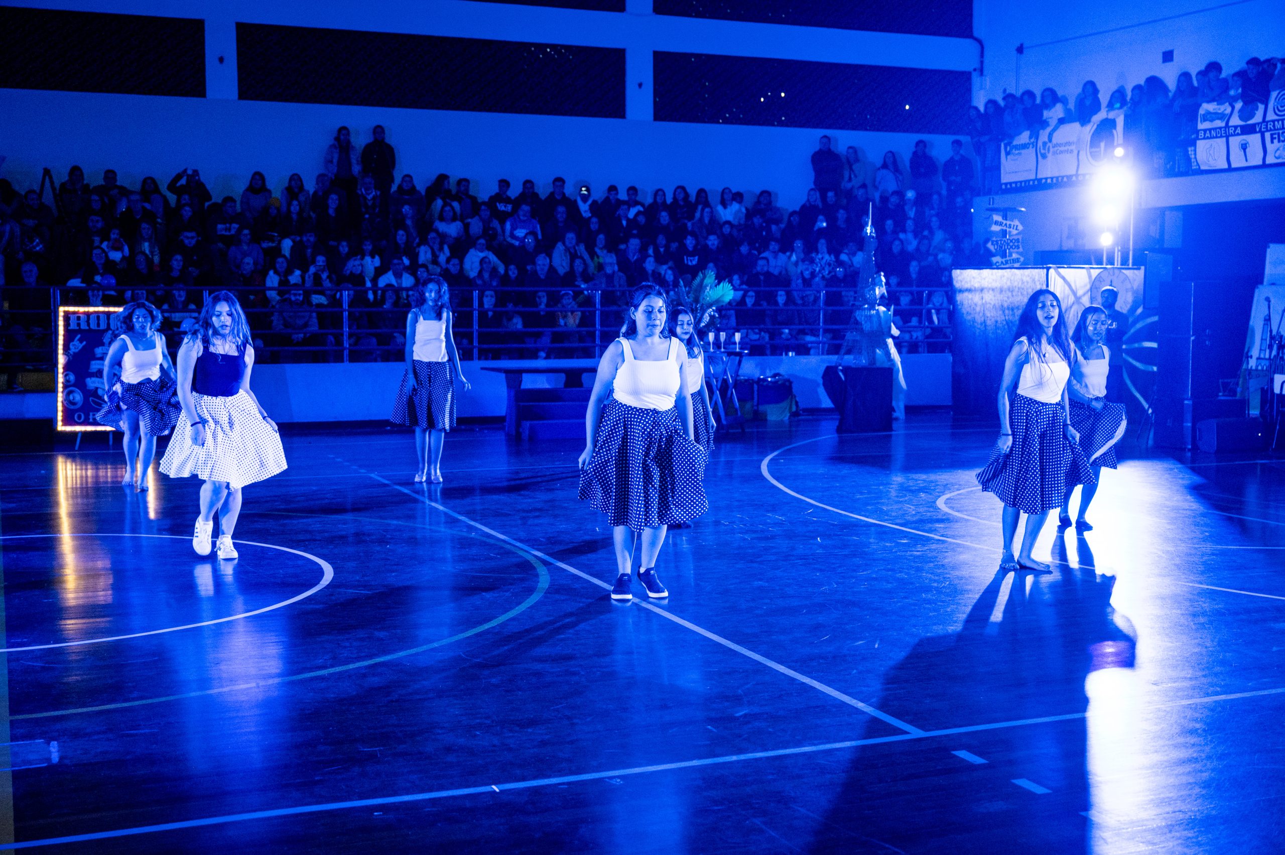 A Bandeira Azul, com os capitães Ana Luiza de Mello Morais, Júlia Macedo Meira, Rafany da Silva Gehren, Thais Carvalho Tuler, apresentou o tema “Toda história tem dois lados”.