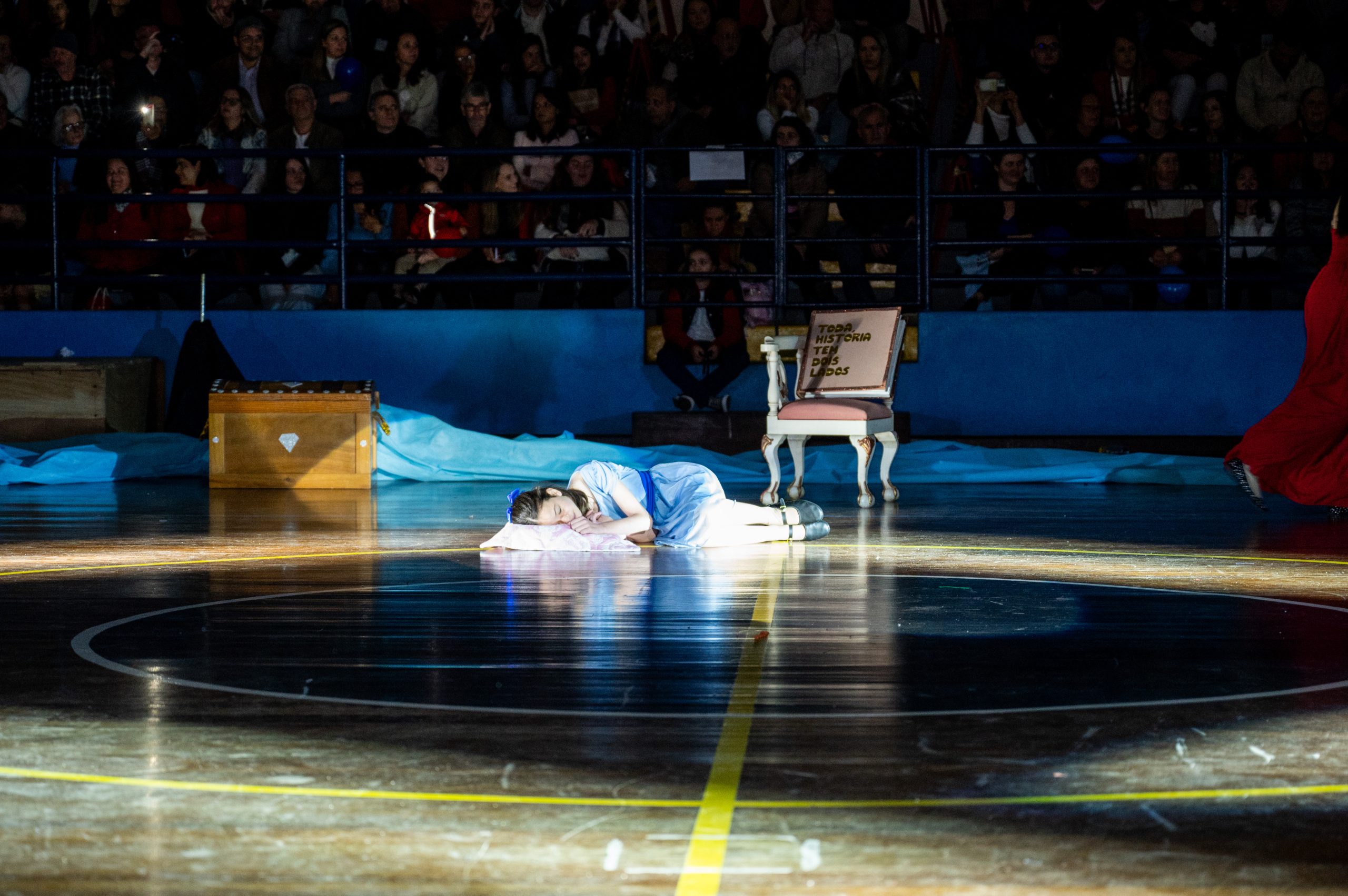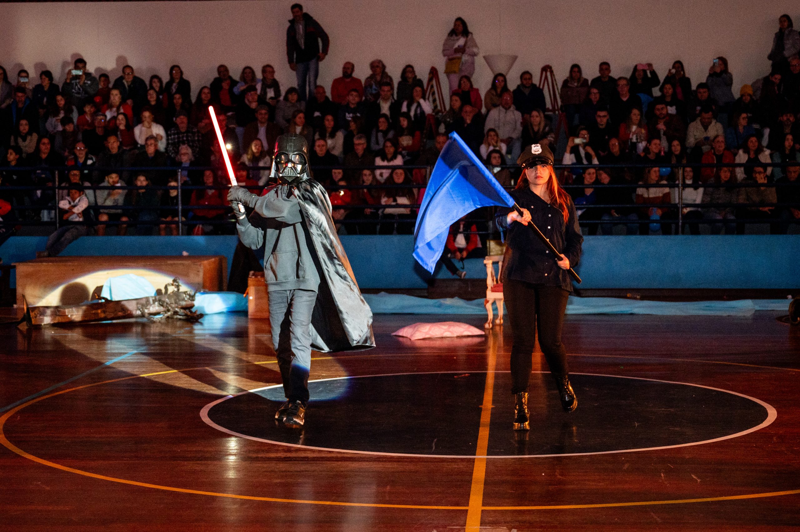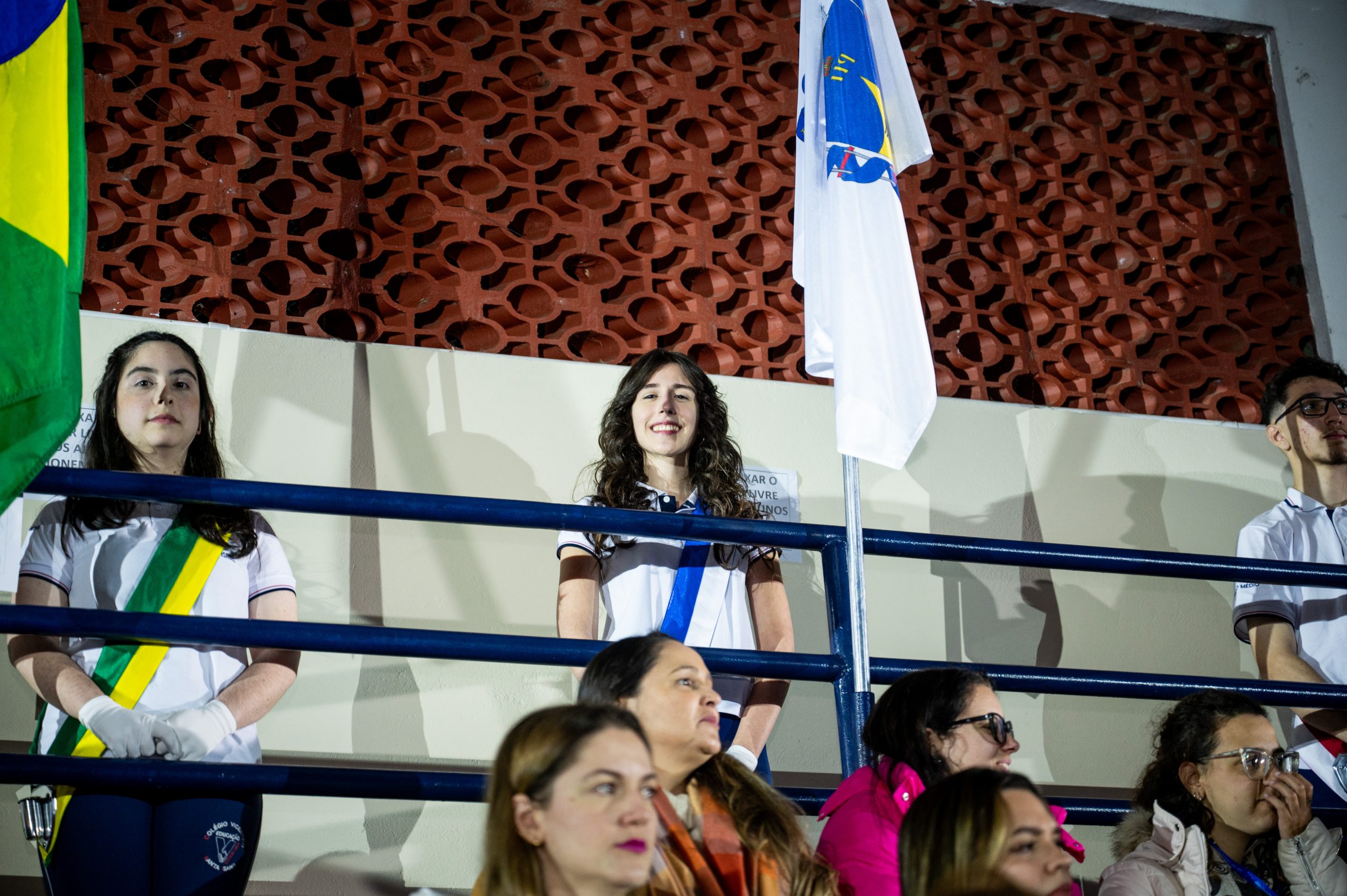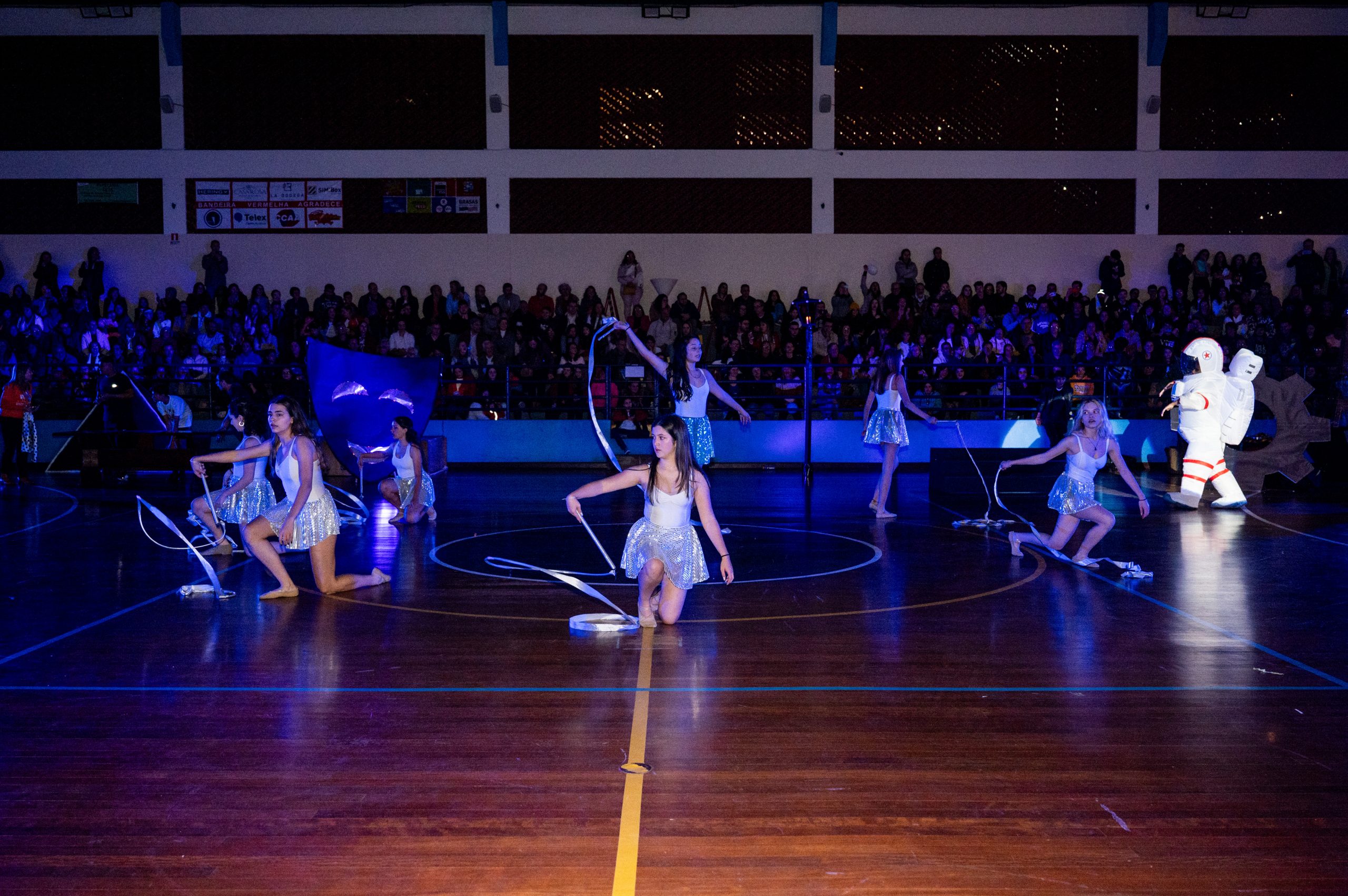 A Bandeira Azul, com os capitães Ana Luiza de Mello Morais, Júlia Macedo Meira, Rafany da Silva Gehren, Thais Carvalho Tuler, apresentou o tema “Toda história tem dois lados”.