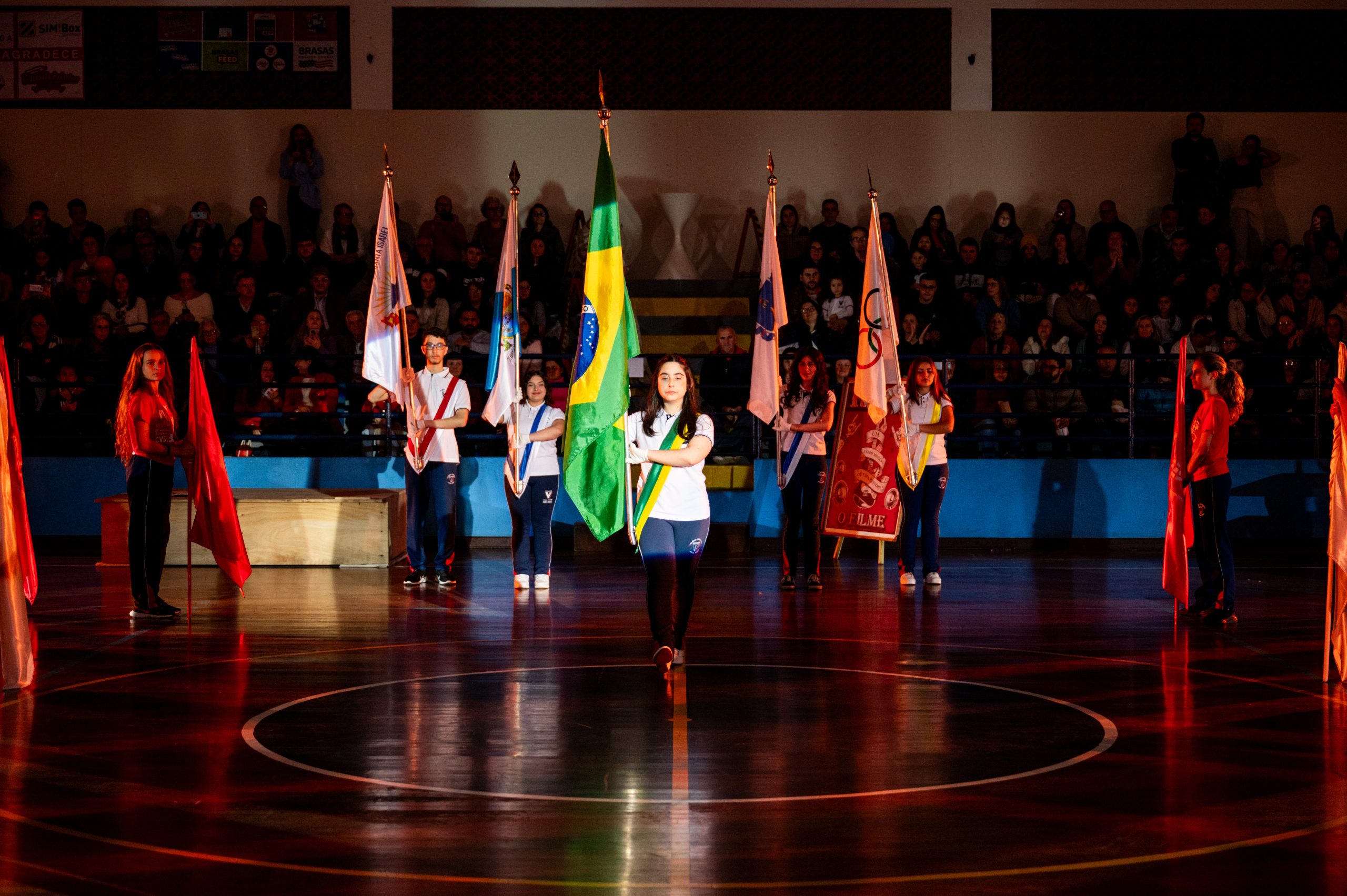 As Bandeiras foram conduzidas pelos alunos que se destacam no Ensino Médio:
