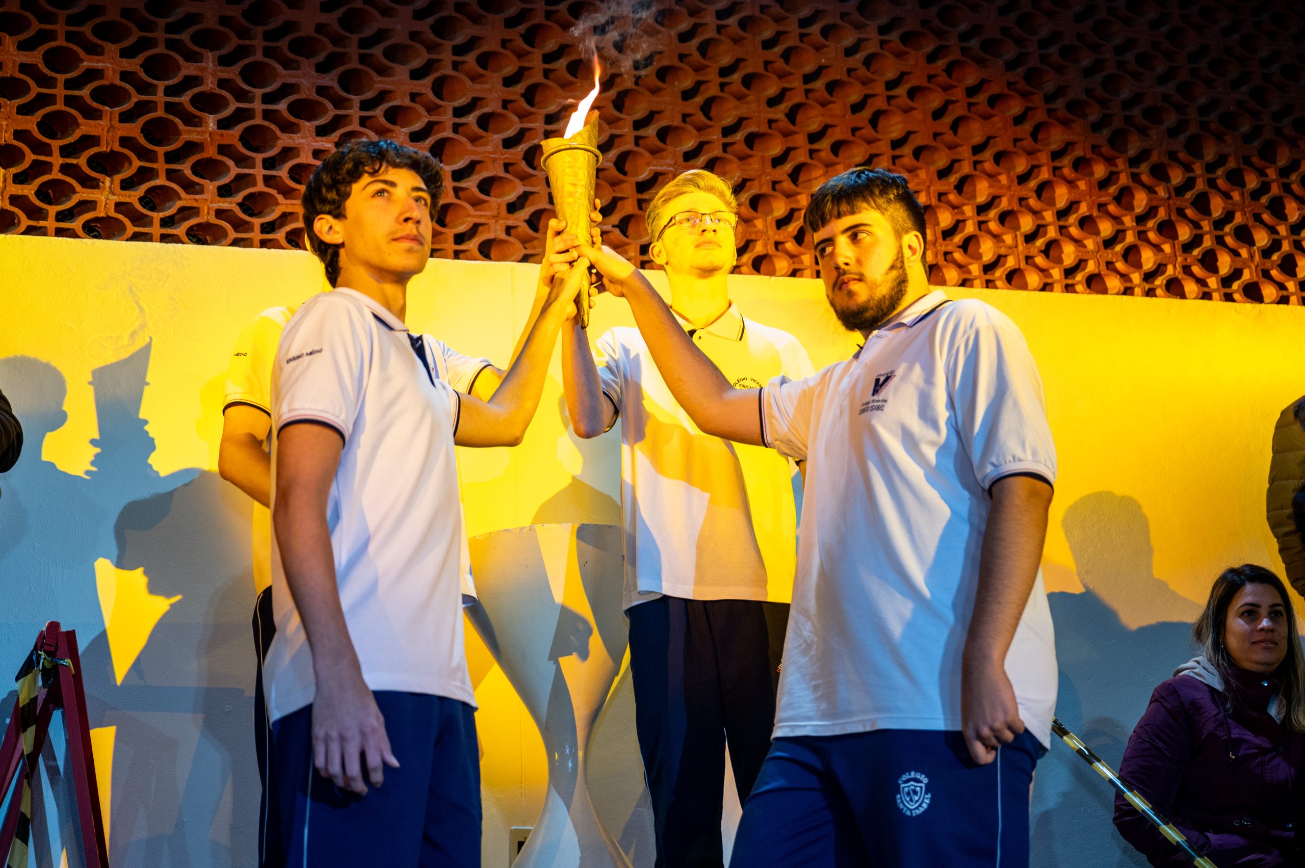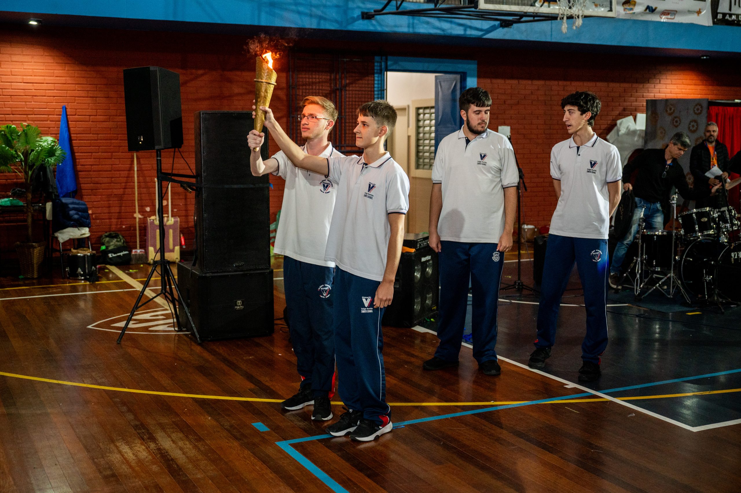A entrada do fogo simbólico foi conduzida pelos alunos: Júlio Stumpf Pereira, Mateus Albuquerque Araújo Silva, Miguel Ríspoli de Oliveira de Freitas e Otávio Kneipp Gomes.