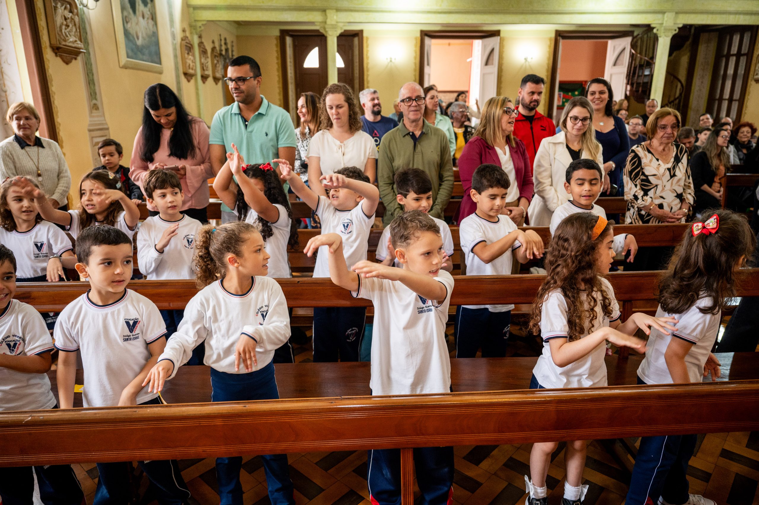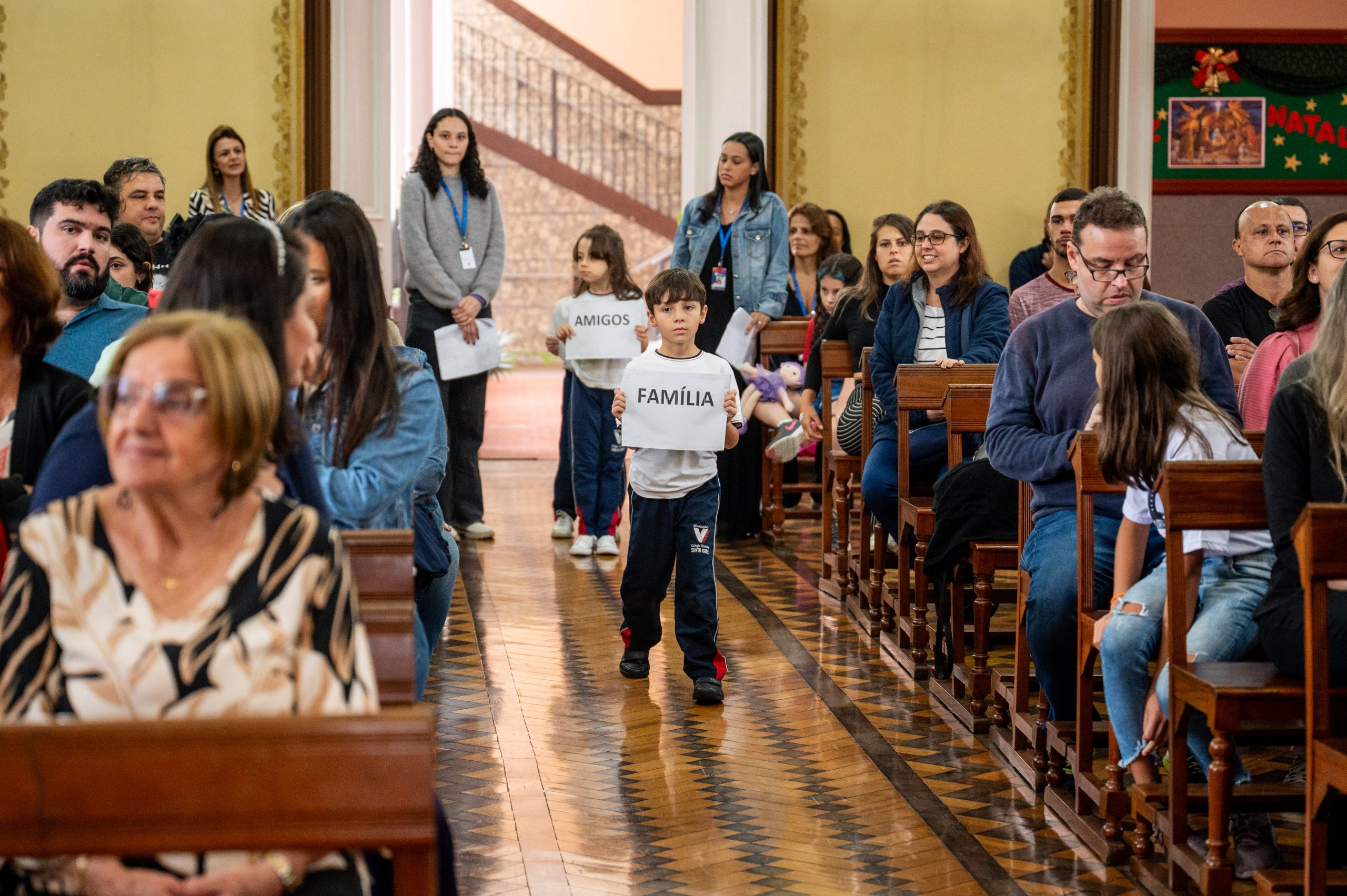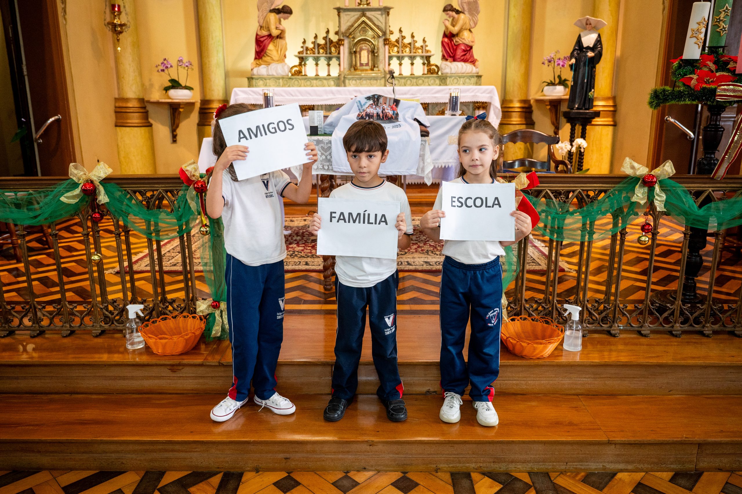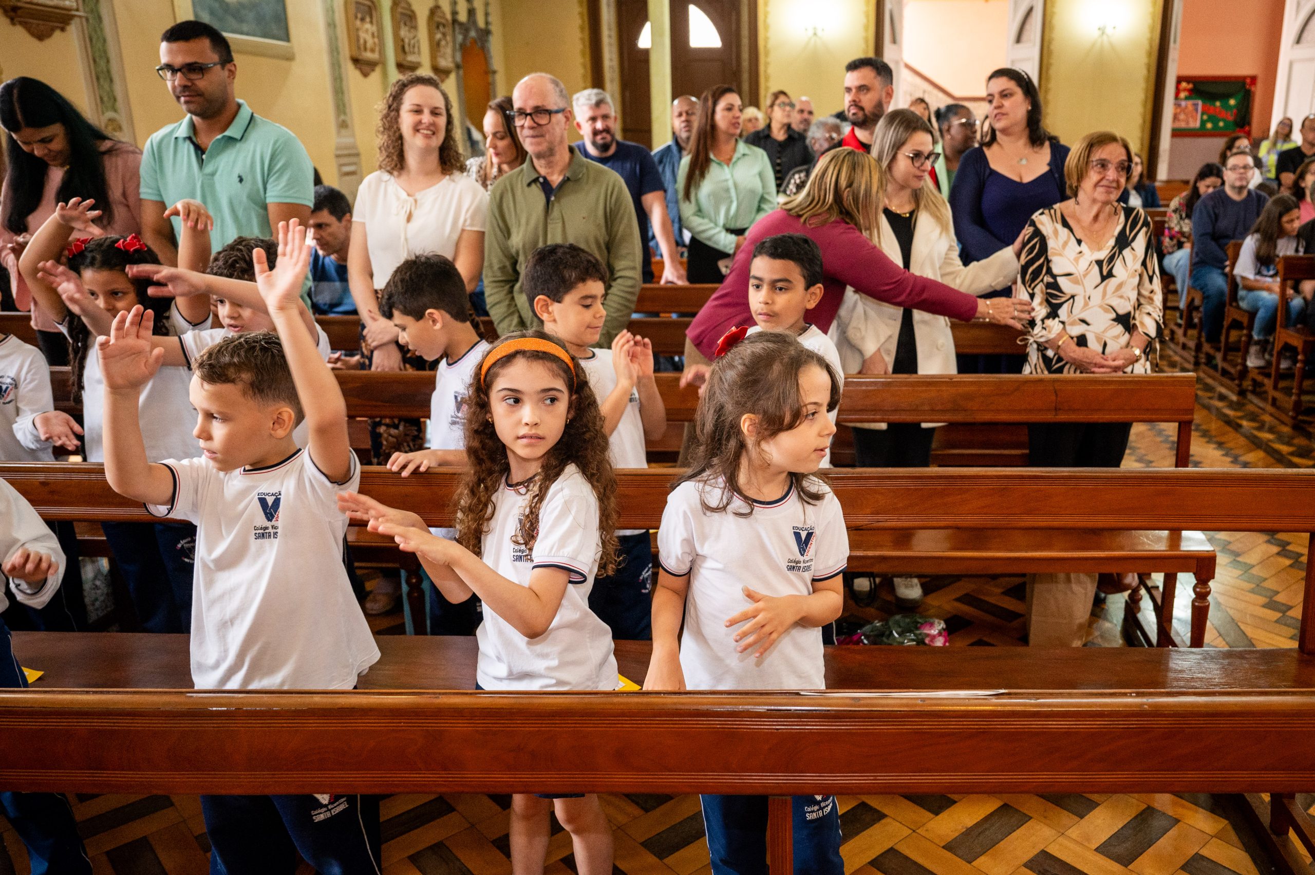 No dia 11 de dezembro, foi o momento especial de agradecer a Deus pelo trabalho realizado ao longo do ano, junto às turmas do 1° ano do Ensino Fundamental. Nosso encontro teve início na Capela do CVSI, onde as crianças entoaram um canto de entrada e levaram símbolos ao altar do Senhor.