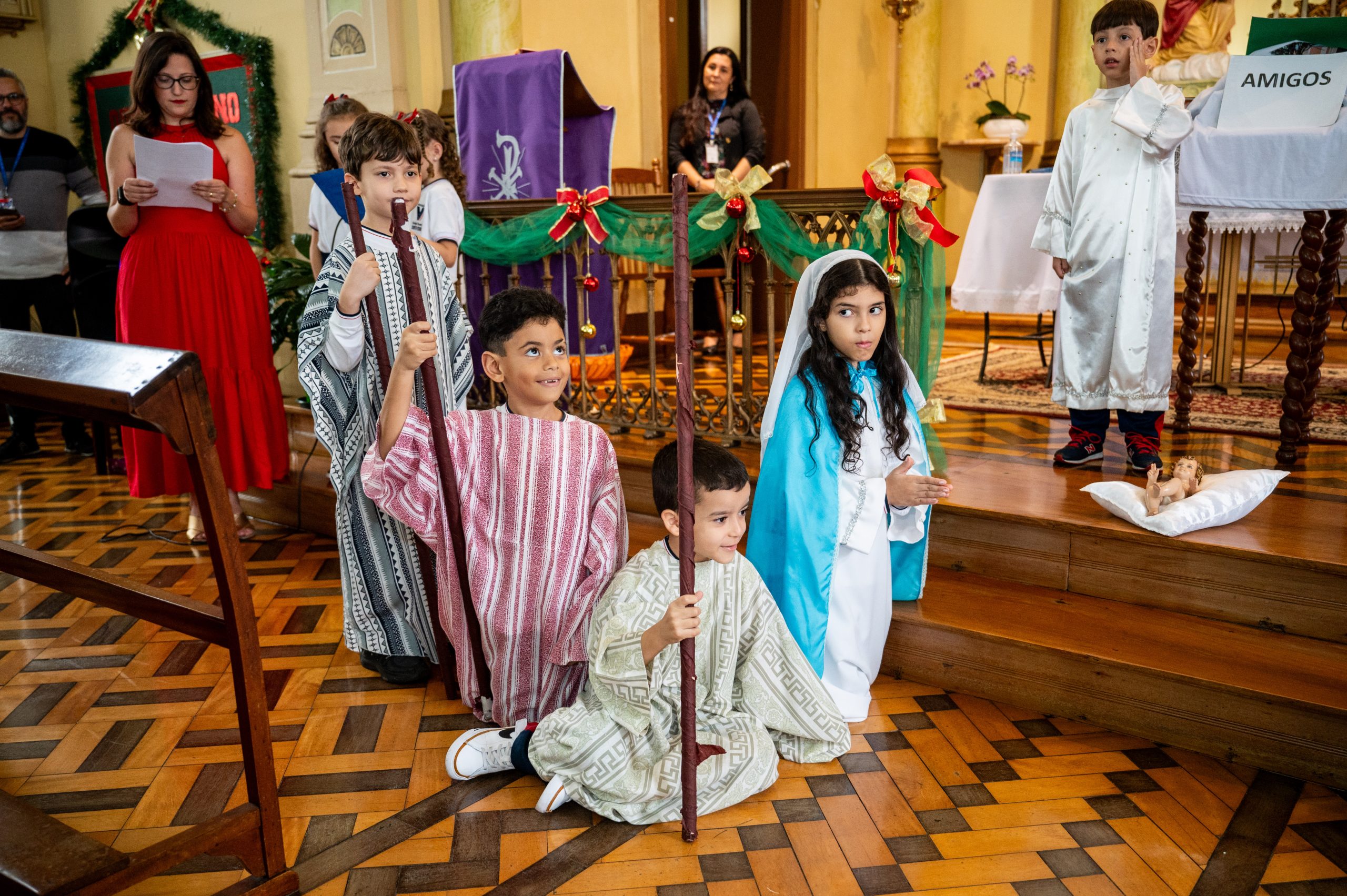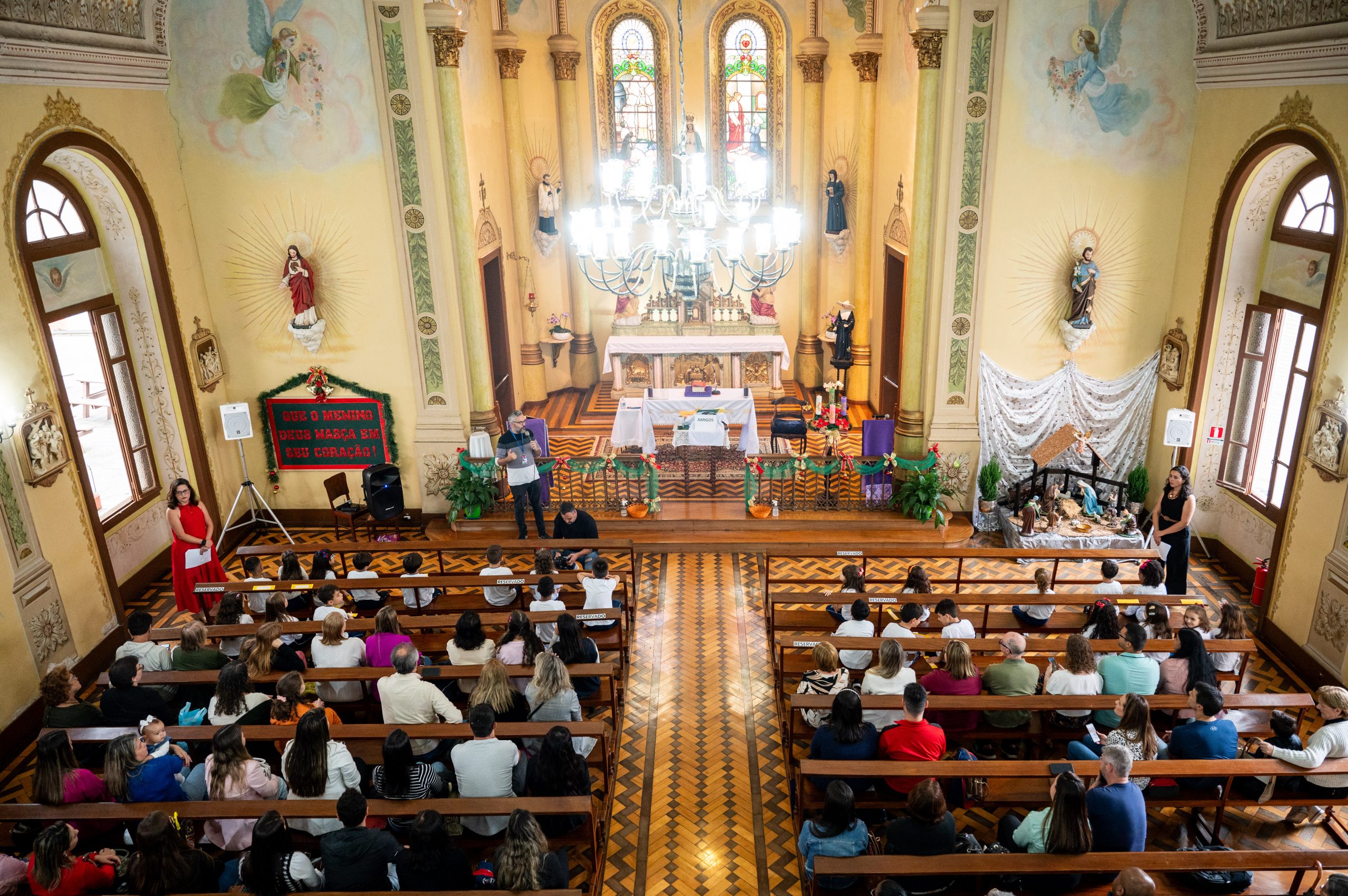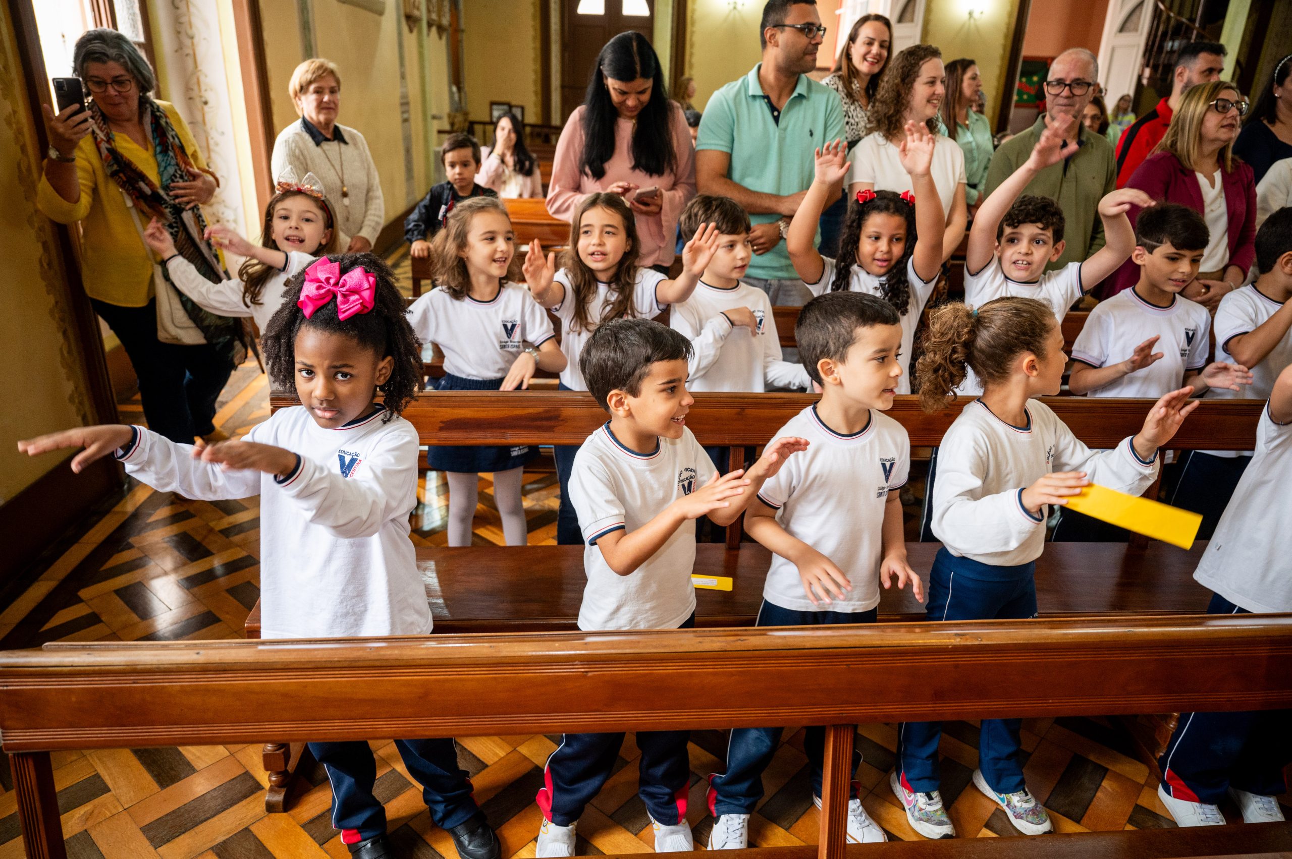 No dia 11 de dezembro, foi o momento especial de agradecer a Deus pelo trabalho realizado ao longo do ano, junto às turmas do 1° ano do Ensino Fundamental. Nosso encontro teve início na Capela do CVSI, onde as crianças entoaram um canto de entrada e levaram símbolos ao altar do Senhor.