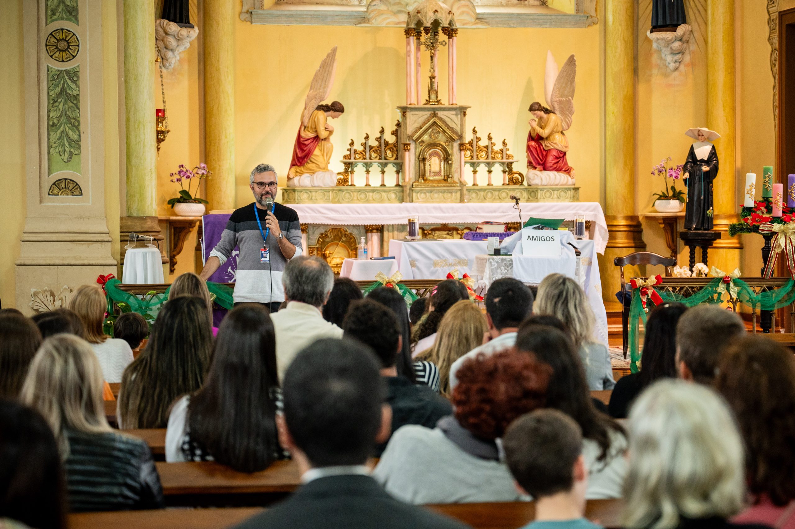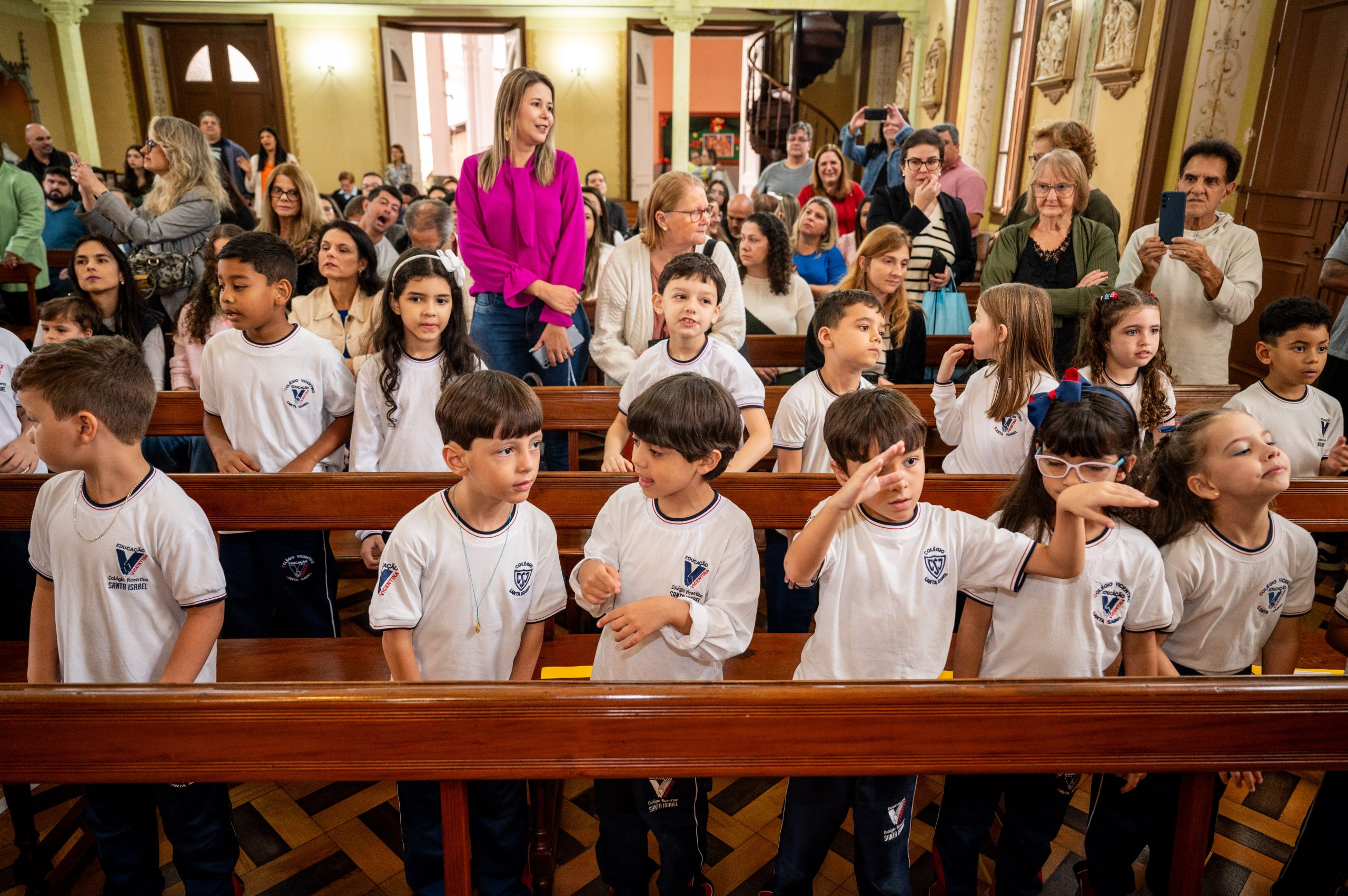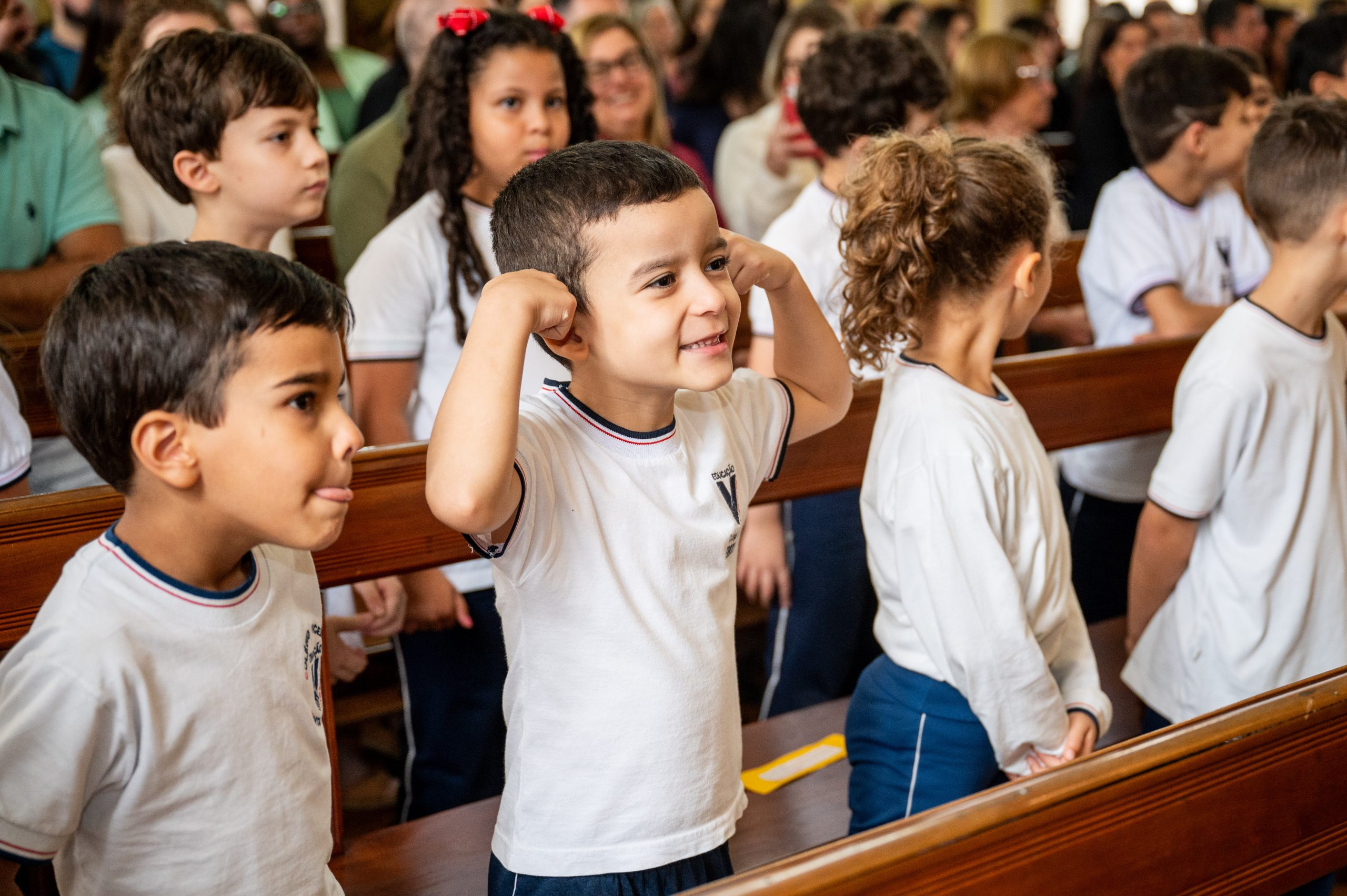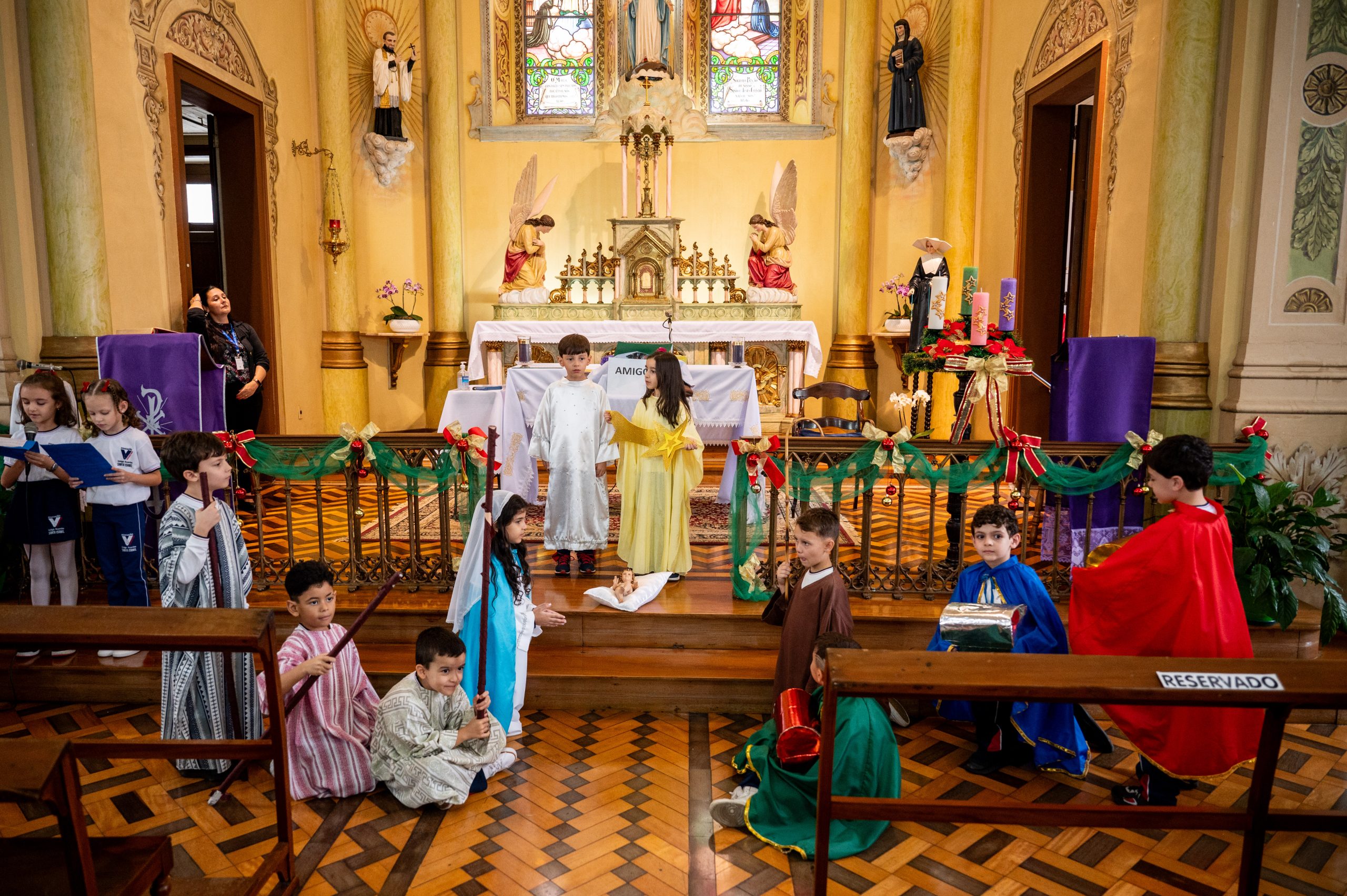 No dia 11 de dezembro, foi o momento especial de agradecer a Deus pelo trabalho realizado ao longo do ano, junto às turmas do 1° ano do Ensino Fundamental. Nosso encontro teve início na Capela do CVSI, onde as crianças entoaram um canto de entrada e levaram símbolos ao altar do Senhor.